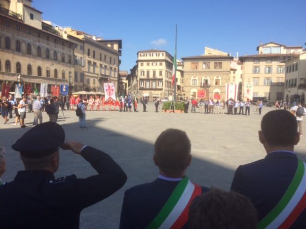 Alle ore 9,45 si è invece svolta una cerimonia solenne in Piazza Santa Croce con l’alzabandiera solenne e la deposizione di una corona d’alloro davanti al monumento che ricorda i caduti di tutte le guerre, che ha visto la presenza di istituzioni civili, militari e religiose, fra le quali il nuovo prefetto Laura Lega. C’era anche il senatore Pd Matteo Renzi.