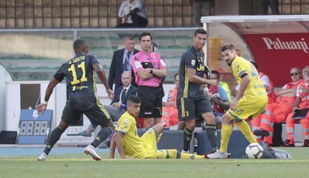 VERONA – E’ rimasto a secco, Cristiano Ronaldo, nella sua prima apparizione in maglia bianconera. La corazzata Juve è riuscita a vincere solo in extremis (gol di Bernardeschi al 93′) con il modesto ma coariacissimo Chievo. Che, grazie a un rigore messo a segno da Giacherini (lui sì fra i più attivi del match) si era preso addirittura la soddisfazione di andare in vantaggio in avvio di secondo tempo.