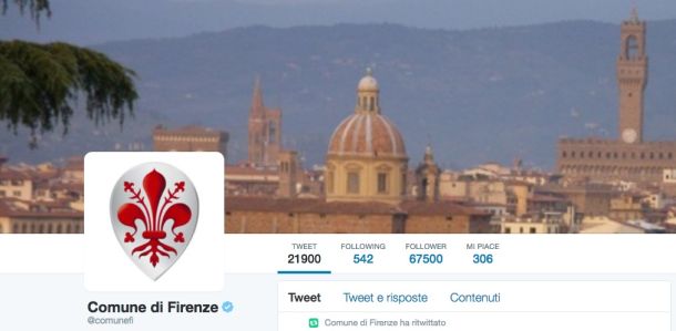 In base all’indagine di Fpa, società del gruppo Digital360 che ha preso in esame 107 capoluoghi del Belpaese, Firenze spicca per il numero di seguaci in rapporto al numero di abitanti. Il capoluogo della Toscana su Twitter è seguìto da circa un quarto della popolazione (24,6%), mentre su Facebook Verbania, Crotone e Pesaro hanno un seguito, rispettivamente, del 41,5%, 36,9% e 34,5%. Napoli, Cesena e Monza sono invece le città più attive su YouTube nell’ultimo anno.