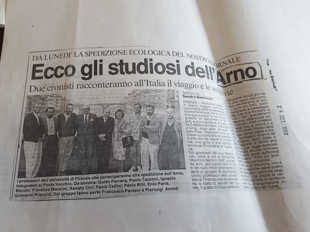 RAPPORTO – Ogni giorno, tappa dopo tapp, raccontammo lo scempio, ma anche gli avvistamenti di pesci e il volo festoso degli uccelli, in particolare degli aironi cinerini. I professori di chimica e i loro assistenti prelevavano campioni d’acqua da analizzare. Scura e inquinata in molti tratti. Lo zampillìo di Stia era solo un ricordo. Risultato? Un rapporto voluminoso, corredato di articoli, foto e puntuali osservazioni dei professori, consegnato all’allora presidente della Regione Toscana, Gianfranco Bartolini. Un anno dopo, 1989, nacquero le autorità di bacino. L’Arno, come accennato, fu affidato al professor Nardi che, dieci anni dopo, disegnò il piano di bacino, con tutte le indicazioni per metere in sicurezza il fiume. Ci sarebbero voluti tremila miliardi di vecchie lire. Mai trovati da nessun governo. Oggi, come detto, la situazione non è cambiata. Siamo solo più vecchi di trent’anni. E magari un po’ più tristi. Anche se pronti, questo si, a rifare un’altra spedizione.