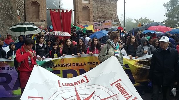 ASSISI – E’ una marcia della pace con tantissimi giovani e pochi politici quella partita da Perugia per raggiungere Assisi. Circa 10 mila sono gli studenti provenienti da ogni parte d’Italia. Portano striscioni inneggianti alla pace, al rispetto dei diritti umani e contro ogni forma di discriminazione. «Candidiamo al Nobel per la pace il modello Riace»: la proposta è arrivata da Flavio Lotti, coordinatore e anima della Marcia della pace Perugia – Assisi, in occasione del suo intervento per i saluti alla partenza del corteo. Il sindaco che non rispetta le leggi è diventato un eroe della sinistra. «Non ci riferiamo a persone in particolare e non vogliamo personalizzare la questione – ha poi ribadito all’ANSA Lotti – ma come comitato organizzatore della marcia proponiamo che il prossimo Nobel venga dato ad un modello di accoglienza, integrazione e solidarietà che serve a tutti e che risponde ai valori a cui la marcia si è sempre ispirata».
