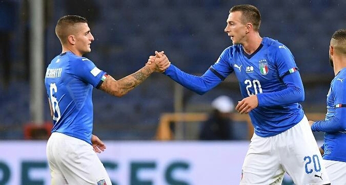 ITALIA (4-3-3): Donnarumma 7, Florenzi 6.5 (39′ st Piccini sv), Bonucci 6.5, Chiellini 6.5, Biraghi 7.5, Verratti 6.5, Jorginho 6.5, Barella 6.5, Chiesa 6.5, Insigne 6, Bernardeschi