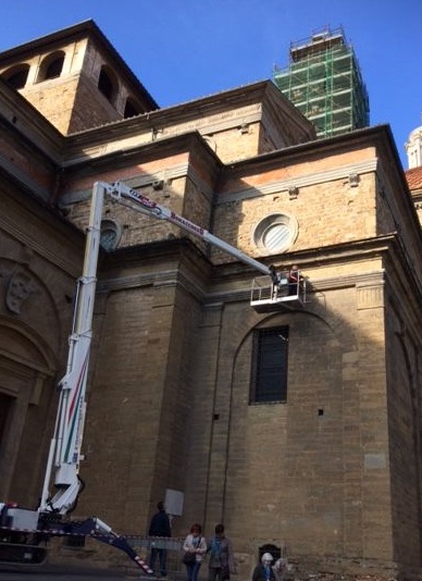 Stamani sono cominciate le operazioni di posizionamento dei cavi per l’installazione delle telecamere che operano su Piazza San Lorenzo e via del Canto dei Nelli. Profittando dell’utilizzazione del carrello elevatore, il presidente dell’OML ha disposto che siano verificate nuovamente (dopo quattro mesi dall’ultima verifica) le condizioni della facciata esterna della Basilica, aderendo all’invito a suo tempo indirizzato dal Soprintendente Andrea Pessina.