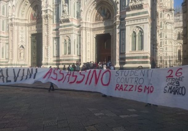 FIRENZE – La notizia l’hanno data gli studenti del Collettivo. I quali hanno annunciato che tre di loro, appunto aderenti al collettivo autonomo studentesco (Cas) di Firenze, sono stati denunciati per vilipendio dalla polizia, per aver esposto in piazza Duomo lo striscione con la scritta «Salvini assassino – studenti contro il razzismo».