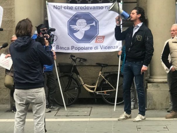 AREZZO – Sono arrivati anche da Vicenza con lo striscione Noi che credevamo nella Banca Popolare di Vicenza per sostenere i risparmiatori di Banca Etruria. Siamo in attesa di conoscere se arriveranno i soldi per i rimborsi, quello che conta è che sia fatta giustizia, ha detto Luigi Ugone dell’associazione Noi credevamo in Banca Popolare di Vicenza. Quello che è più clamoroso – ha puntualizzato Letizia Giorgianni del Comitato vittime salvabanche – è che purtroppo quello che è accaduto a noi può ancora succedere dal momento che nel processo non sono state coinvolte Consob e Bankitalia. Se anche arriverà giustizia dal tribunale cambierà poco. Il corteo, con il drappello di manifestanti muniti di cartelli di protesta su cui si legge assolto, prosciolto, prescritto, tutti santi, banchiere delinque giustizia connivente, è partito dal centro di Arezzo, dove si trova la sede storica della ex Banca Etruria fino al palazzo di giustizia dove si sta svolgendo l’ udienza per il filone bancarotta.