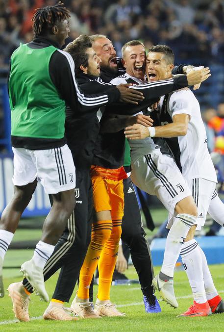 JUVENTUS (4-3-3): Szczesny 6 ; De Sciglio (90’ Barzagli) 6 , Bonucci 6 , Rugani 6, Alex Sandro 6 ; Bentancur 6,5, Pjanic 6 (80’ Douglas Costa), Matuidi 6; Bernardeschi 5 (66’ Cuadrado 6), C. Ronaldo 7,5, Dybala 6,5. All. Allegri 6.