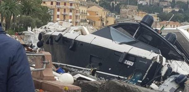 hanno iniziato a muoversi verso la riva opposta del golfo rapallese spinte dalle onde e dal vento. Davanti a centinaia di persone attonite, sistemate lungo le banchine del porto pubblico a contare i danni subiti anche da questo scalo, gravemente danneggiato, è iniziata a transitare una surreale, drammatica processione di superyacht, tutti destinati, lentamente, inesorabilmente, a schiantarsi a terra