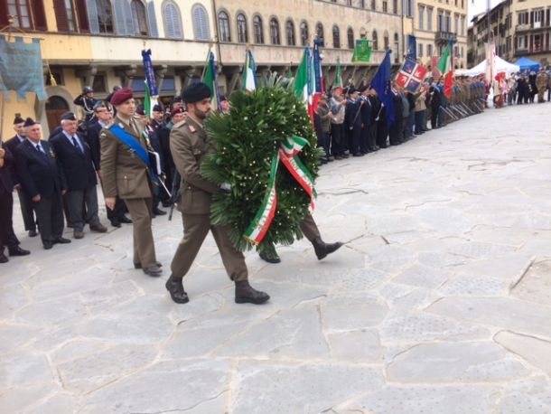 FIRENZE – Cerimonia solenne, stamani, 4 novembre 2018, in piazza Santa Croce, per ricordare i 100 anni dalla fine della Grande Guerra. Con l’intervento, fra gli altri, del prefetto Laura Lega, e del generale Tornabene comandante dell’Istituto Geografico Militare, quindi la deposizione delle corone e la sfilata del Gonfalone del Comune di Firenze e dei reparti militari.
