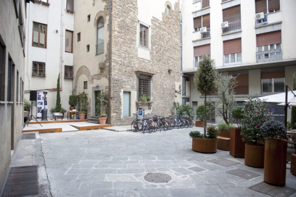 FIRENZE – Un luogo storico di Firenze, che ospita una casa torre del XIII secolo e sul quale si affaccia un condominio progettato dal celebre architetto Giovanni Michelucci nel 1954, per decenni in stato di degrado e incuria, viene oggi riqualificato e donato alla città, diventando un posto aperto a tutti, dove fare una sosta di relax: è Piazzetta dello Sprone, a due passi da Ponte Vecchio e da piazza della Passera, nel cuore dell’Oltrarno fiorentino. Lo spazio, una specie di cortile all’interno dei palazzi, diventato col tempo – oltre che un parcheggio – un posto di spaccio e un ricovero di fortuna per senzatetto, è adesso, dopo un attento lavoro di riqualificazione, estetica e funzionale, una vera e propria piazzetta con tanto di sedute, piante e rastrelliere per le biciclette.
