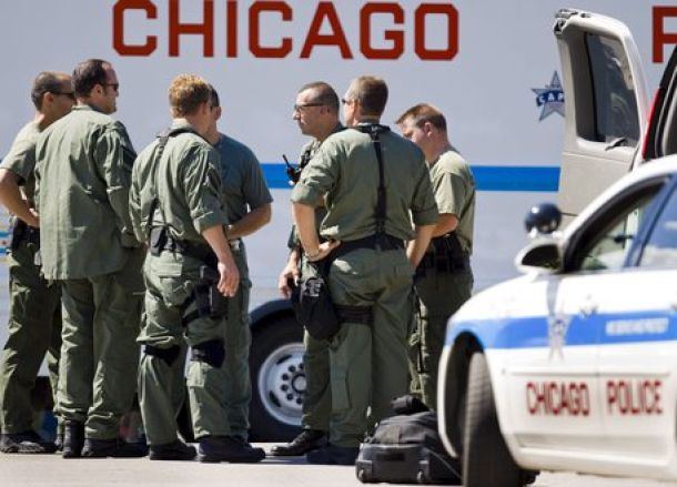 I poliziotti dopo la sparatoria davanti all’ospedale di Chicago