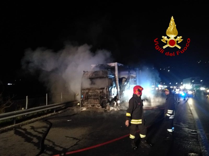 A1, Firenze: mezzo pesante incendiato in corsia d’emergenza, intervento dei vigili del fuoco