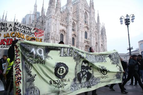MILANO – Sono tornate le contestazioni alla Scala di Milano. Soprattutto contro il governo e Matteo Salvini. Decine di militanti del centro sociale Il Cantiere hanno lanciato vernice bianca e ortaggi contro gli agenti in tenuta antisommossa disposti davanti al palazzo che ospita la Società del Giardino in via San Paolo a Milano, dove è prevista la cena di gala dopo la prima del Teatro. I contestatori hanno acceso un fumogeno, esposto uno striscione (contro Salvini, Macron, Trump e Bolsonaro) e urlato slogan contro esponenti del governo. Non c’è stato alcun contatto con le forze dell’ordine e dopo pochi minuti il gruppo è partito in corteo verso corso Vittorio Emanuele e a breve raggiungerà piazza della Scala dopo aver attraversato la Galleria.