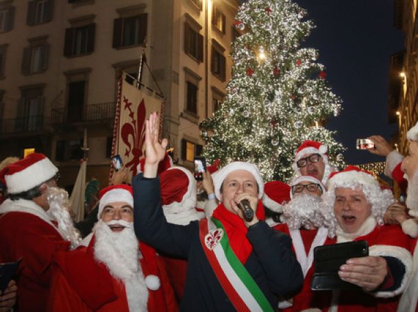 FIRENZE – Aperte le festività natalizie anche a Firenze con la festa dell’Immacolata. Il sindaco Dario Nardella ha acceso le luci dei tre grandi alberi di Natale allestiti in Palazzo Vecchio, in piazza San Giovanni e in piazza Santa Maria Novella, spostandosi con il trenino dell’Associazione dei Babbi Natale, e con gli sbandieratori, tra la grande folla di fiorentini e turisti che hanno preso d’assalto le strade del centro storico tutte già illuminate a festa.