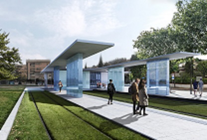 Il capolinea sarà dotato di una pensilina con le tamponature in policarbonato trasparente e avrà una sala d’aspetto e dei locali di servizio per il personale del tram e per la polizia municipale. A fianco al capolinea del tram verrà posizionato anche il capolinea degli autobus urbani 24, 48 e 49. Obiettivo è l’entrata in esercizio della linea nel 2023. Il progetto è stato realizzato dai tecnici di Tram spa.