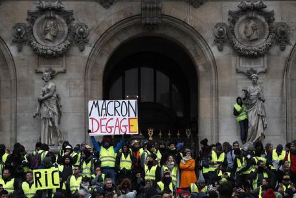riempiendo la place de l’Opera per il previsto sit-in. Per ora i manifestanti si limitano a cori contro Emmanuel Macron e a cantare a ripetizione la Marsigliese, anche dopo essere arrivati faccia a faccia con i poliziotti che li hanno bloccati a metà degli Champs-Elysees. All’Opera, i manifestanti che continuano ad affluire dalla vicina gare Saint-Lazare sono completamente circondati da un