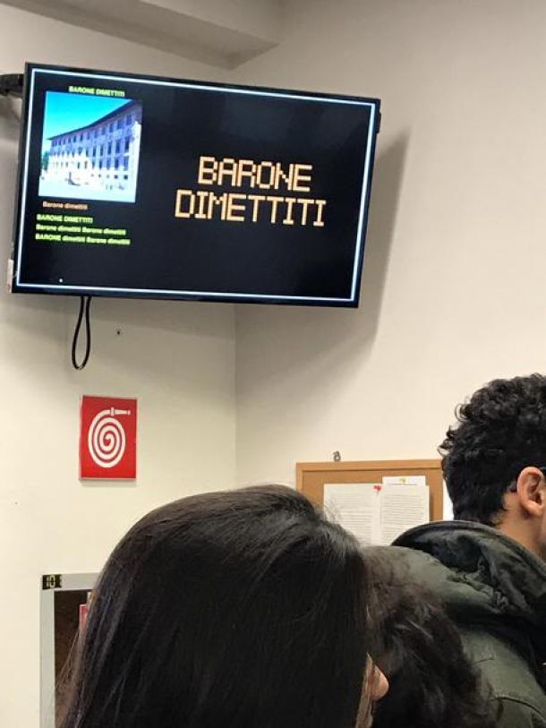 PISA – Protesta contro il rettore della Normale di Pisa. Con inviti ad andarsene. Striscioni sono stati esposti stamani alla Normale di Pisa con la scritta «Barone dimettiti», vergata da alcuni convitti del prestigioso istituto superiore universitario. La stessa scritta, riferia al rettore Barone, è comparsa all’ora di pranzo sui maxi schermi della mensa dopo che qualcuno ha hackerato il sistema interno che proietta il menu giornaliero.