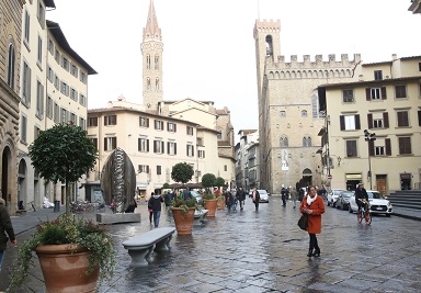 Nuove sedute in pietra serena e fioriere in cotto di Impruneta con addobbi floreali: questo il nuovo allestimento di piazza San Firenze pedonalizzata, presentato stamani dal sindaco Dario Nardella e dall’assessore all’ambiente Alessia Bettini.
