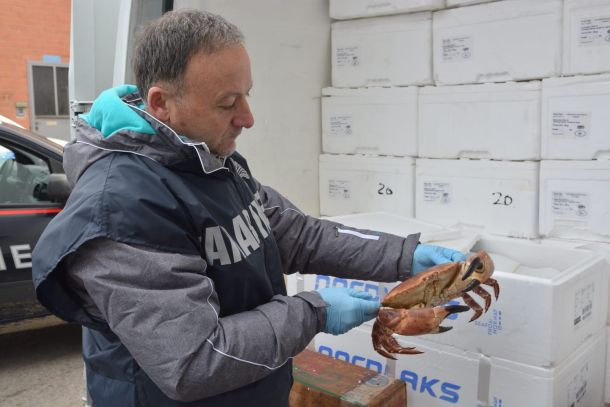 Inoltre l’accertamento portava alla sospensione sanitaria di 360 Kg di Granchi della specie Gancer Pagurus (granciporro dell’atlantico) per un valore complessivo di circa 2.200,00 Euro per violazioni sulla tracciabilità dell’alimento, in quanto privo di documenti di trasporto e carenti, ambigue e mancanti informazioni sui contenitori di vendita e contestuale notifica di violazione amministrativa per Euro 1.500,00. Due cittadini stranieri sono stati deferiti all’Autorità Giudiziaria