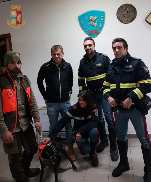 AREZZO – La Polizia Stradale di Arezzo ha restituito al suo padrone Tango, un bracco nero da caccia che era scappato in A1. La riconsegna è avvenuta domenica scorsa ma la notizia è stata diffusa oggi. Un automobilista ha notato il cane mentre vagava, impaurito, lungo la corsia di emergenza all’altezza di Arezzo. E riuscito a fermarsi e a metterla al sicuro nella propria auto, prima che finisse investita o provocasse un incidente. Il conducente ha chiamato la Polstrada, che ha interessato la sottosezione di Battifolle. Gli agenti hanno notato che il cane aveva collare e targhetta di riconoscimento: in pochi minuti hanno rintracciato il padrone e lo hanno invitato a recarsi nella loro caserma.