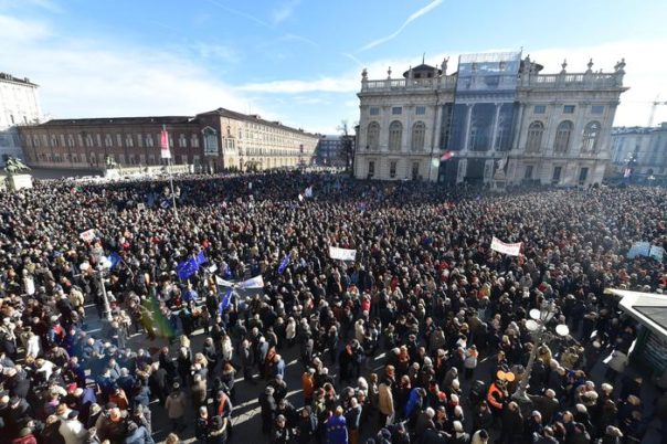 Torino: Si Tav in piazza, sono circa 30.000. Con loro i governatori Chiamparino e Toti, insieme a Martina (Pd)