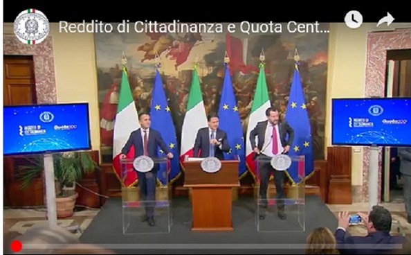 « Il Consiglio dei ministri, su proposta del Presidente Giuseppe Conte e del Ministro del lavoro e delle politiche sociali Luigi Di Maio, ha approvato un decreto-legge che introduce disposizioni urgenti in materia di reddito di cittadinanza e di pensioni.