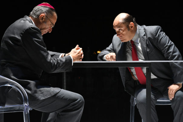 Teatro Eliseo, Fondazione Campania dei Festival, Napoli Teatro Festival Italia presentano Lunetta Savino, Luca Barbareschi, Massimo Reale e Duccio Camerini in «Il penitente» di David Mamet, scene Tommaso Ferraresi, costumi Anna Coluccia, luci Iuraj Saleri, musiche Marco Zurzolo, suono Hubert Westkemper, video Claudio Cianfoni, Marco Tursi e Andrea Paolini, dramaturgia Nicoletta Robello Bracciforti, traduzione e regia Luca Barbareschi
