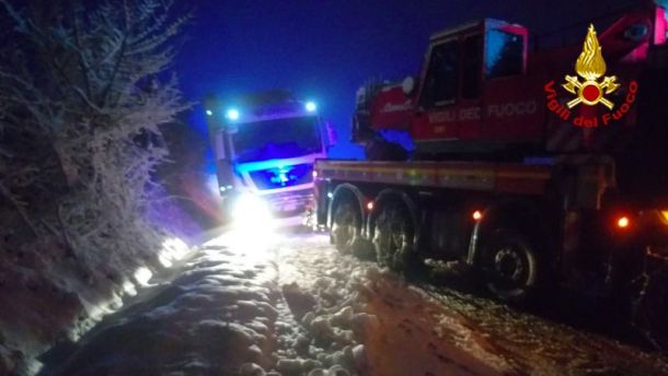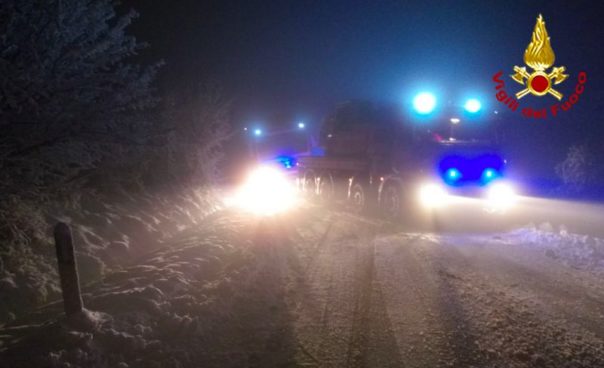 SIENA – I Vigili del Fuoco del Comando di Siena e del distaccamento di Piancastagnaio sono intervenuti dalle ore 19.30 alle ore 01.30 per il recupero di autoarticolati rimasti bloccati a causa neve e dalla mancanza di catene, sulla SP 478 presso Radicofani e al bivio di Vivo d’Orcia, presso Castiglione d’Orcia.