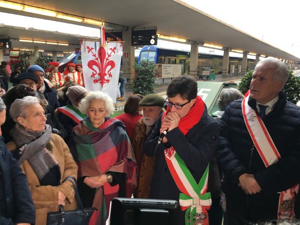FIRENZE – Alla cerimonia organizzata dal Comune di Firenze, ieri 27 gennaio, giorno della memoria, per le ore 11.00 al binario 16 della stazione di Santa Maria Novella erano presenti in molti, nonostante la temperatura fosse particolarmente rigida. A fianco della presidente della Comunità ebraica fiorentina Daniela Misul c’erano il sindaco Dario Nardella, il presidente del Consiglio regionale della Toscana Eugenio Giani e poi tanti altri volti: Rosa Maria Di Giorgi, Caterina Biti, Simona Bonefè, Valdo Spini, Andrea Ceccarelli, Sara Funaro,il rettore Luigi Dei. I vari interventi si sono incentrati sulla Shoah, le leggi razziali, la prigionia, le sofferenze disumane e i lutti; una tragedia da non dimenticare e su cui riflettere.