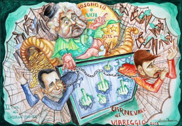 artisti viareggini, con più di 250 professionisti della creatività impegnati nella fabbricazione di veri e propri teatri viaggianti. Tra i temo dei carri si va dal bullismo all”immigrazione, da Emma Bonino a Donald Trump, dai social ai cavalieri dell”Apocalisse.
