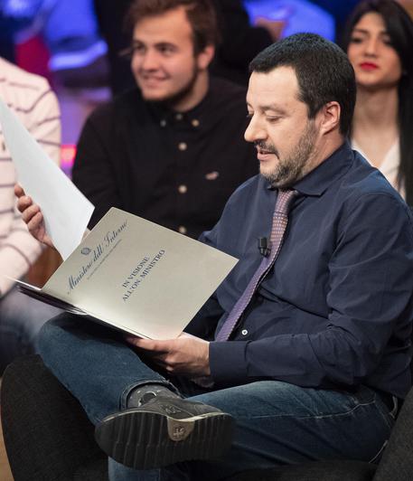Salvini con la cartellina del Ministero dell’Interno