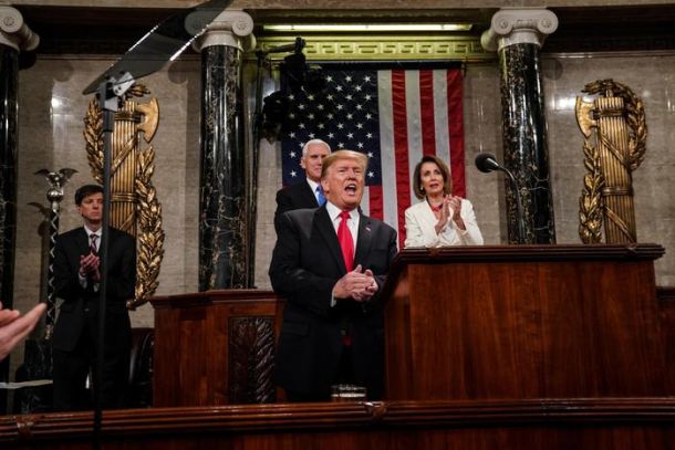 WASHINGTON – «Basta con stupide guerre politiche e con queste indagini ridicole e di parte. No alla vendetta e alla resistenza, bisogna scegliere la strada della grandezza». Il messaggio di Donald Trump al Congresso più chiaro di così non potrebbe essere. I democratici hanno riconquistato la maggioranza alla Camera ed evocano scenari da impeachment, così il presidente americano nel discorso sullo stato