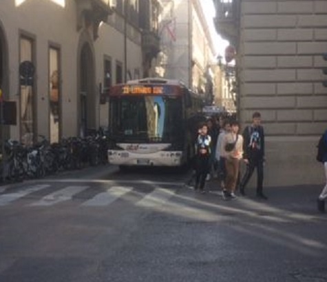 LINEA C1 – Cominciano le dolenti note perché la C1 (frequentata soprattutto da turisti e anziani) è una delle linee nelle quali più di frequente si verifica il salto della corsa, una specialità per la quale si potrebbe andare sul podio delle olimpiadi. Quasi tutti i bussini sono moderni. Alcuni (pochi) antiquati e che per di più presentano indicazioni sbagliate per i passeggeri (vedi foto). Il capolinea, Lungarno Diaz, non esiste più e oltretutto sarebbe nella direzione opposta a quella della corsa immortalata. Nei tratti Via Cavour – Cappelle medicee, e San Marco – Via Lamarmora l’asfalto dissestato provoca sobbalzi repentini che mettono a rischio l’incolumità dei passeggeri in piedi.