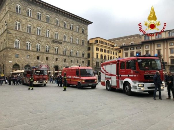FIRENZE – I Vigili del Fuoco del Comando di Firenze sono intervenuti in Piazza della Signoria per un soccorso a persona. Un uomo, in piedi sulla balaustra della Loggia dei Lanzi, minacciava di gettarsi di sotto. Le squadre VF, intervenute con 3 mezzi, hanno immediatamente gonfiato il telo da salto posizionandolo sotto l’uomo. Successivamente l’uomo ha desistito, rientrando sulla terrazza. Sul posto anche la Polizia Municipale e la Polizia di Stato.