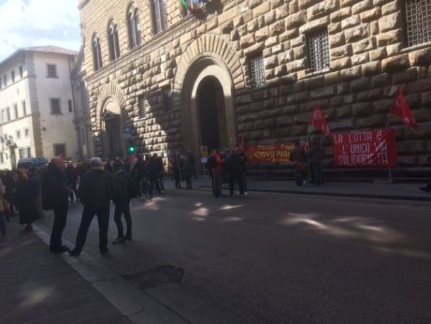 FIRENZE – Un presidio dei lavoratori, organizzato dai sindacati, per ricordare a tutti che 252 lavoratori Bekaert sono ancora in attesa di notizie riguardo il processo di reindustrializzazione dello stabilimento e del pagamento della cassa integrazione, reintrodotta ma ancora non autorizzata dall’Inps. In vista dell’incontro al Ministero dello Sviluppo Economico, convocato il 28 marzo prossimo, la Fiom Cgil di Firenze ha promosso un presidio sotto la Prefettura di Firenze  oggi lunedì 11 marzo dalle 10.30 alle 12.30. Alle 12.15 una delegazione di lavoratori accompagnata dal Segretario Generale della Fiom Cgil, Daniele Calosi, è stata ricevuta dal Prefetto.