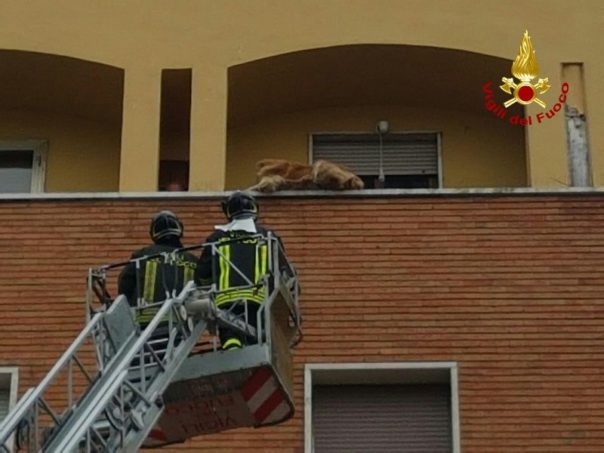 Il personale vigilfuoco, intervenuto con l’autoscala, ha provveduto a recuperare il cane, che a vista non risultava essersi ferito, e a collocarlo in posizione di sicurezza nell’appartamento, al momento disabitato