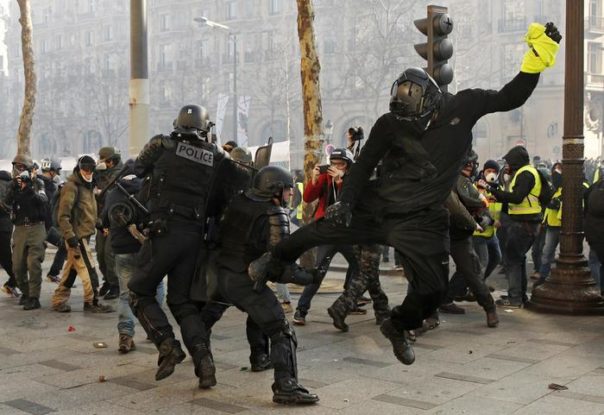 Parigi. violenze gilet gialli, Macron torna dalle vacanze sulla neve, 230 persone fermate dalla polizia