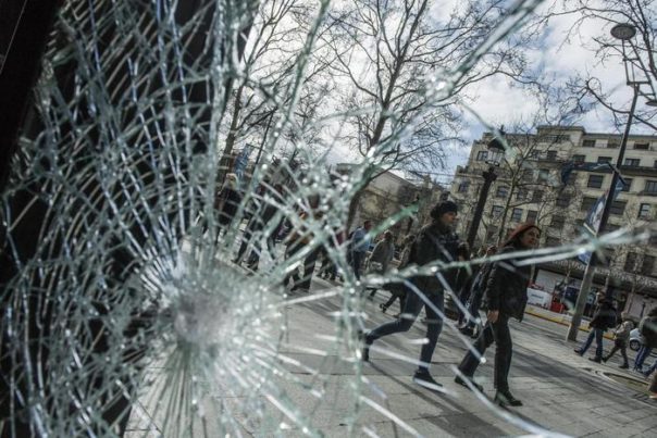 PARIGI – Hugo Boss, Longchamp, Swarovski, Nespresso, Bulgari, Fouquet’s…gli Champs-Elysees il giorno dopo la battaglia sono irriconoscibili, 8 ore di devastazione sistematica, di incendi e di saccheggi hanno sfigurato la prestigiosa avenue parigina e le vie adiacenti, soprattutto la avenue Franklin D. Roosevelt. Proprio l’incendio della banca Tarneaud, su avenue Roosevelt, è stato uno dei momenti più impressionanti della giornata di ieri, con le fiamme che si sono propagate a tutto l’edificio e l’evacuazione dei residenti. Una mamma con il bimbo – rimasti intrappolati al secondo piano – sono stati salvati dai pompieri.