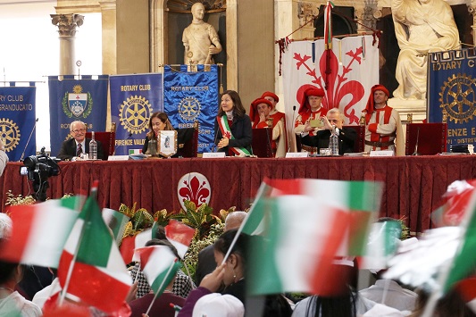 FIRENZE – Una festa in onore del Tricolore con i ragazzi delle scuole. Il 19 marzo mattina, nel Salone dei Cinquecento di Palazzo Vecchio, si è svolta la giornata conclusiva del progetto dei Rotary Club Firenze Nord dell’Area Medicea: la premiazione del concorso rivolto agli studenti delle scuole secondarie di primo grado. ll progetto era inserito ne ‘Le Chiavi della Città’, il pacchetto di iniziative e progetti formativi che l’assessorato all’educazione offre ai ragazzi delle scuole dell’infanzia, delle primarie e delle secondarie di primo e secondo grado, in collaborazione con Ente Cassa di Risparmio di Firenze (Portale Ragazzi.it).