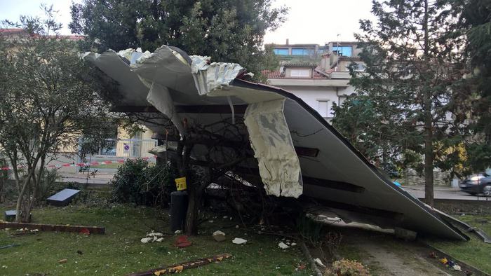 PRATO – Risulta invece divelta la copertura di un campo da tennis a Prato. Per le prossime ore sono attesi ancora forti venti di Grecale su tutta la regione. Previste raffiche fino a 100-120 km/h sui rilievi appenninici, fino a 80-100 km/h su Arcipelago, Amiata, Colline metallifere e litorale, e fino a 60-80 km/h altrove. L’allerta arancione proseguirà fino alle 18 di oggi, per poi esser declassato a giallo e proseguire fino alle 24 di domani, mercoledì 27, quando i fenomeni andranno attenuandosi con raffiche da nord-est fino a 70-90 km/h sui rilievi appenninici, fino a 60-80 km/h sulle zone collinari centro-meridionali e fino a 40-60 km/h sulle zone di pianura. La protezione civile ricorda i principali rischi per l’incolumità delle persone, che sono legati al crollo di alberi, alla caduta di sassi e strutture pericolanti e pertanto raccomanda la massima cautela.