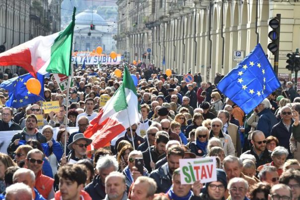 Il corteo Sì Tav, partito alle 10 da piazza Vittorio per finire dopo poche centinaia di metri in piazza Castello, ha preso il via sulle note dell’Inno alla gioia la marcia. Ad aprire il corteo le ‘madamin’ con lo striscione “Si Tav subito”, lo stesso slogan che viene scandito dai partecipanti. Segue lo striscione del comitato di Mino Giachino “Si Tav si Lavoro”. La marcia accende la miccia della contesa elettorale, nel giorno in cui il segretario del Pd Nicola Zingaretti apre a Torino la campagna per il voto del 26 maggio.