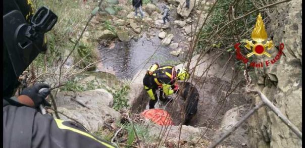 AREZZO – Un pastore tedesco rimasto bloccato in una scarpata in località Doccia, nel comune di Arezzo, da cui non riusciva a risalire è stato salvato oggi dai vigili del fuoco coadiuvati dall’elicottero Drago. Il cane era scivolato a lato di una cascatella rimanendo bloccato in un piccolo terrazzamento. L’animale è stato sentito lamentarsi da alcune persone che facevano trekking, che hanno allertato i soccorsi. I vigili si sono calati dall’elicottero con un verricello e hanno raggiunto l’animale assicurandolo con delle corde. Poi lo hanno issato lungo la scarpata dove ad attenderlo c’erano altri vigili. Successivamente sono stati rintracciati i proprietari che avevano denunciato la scomparsa del cane già da mercoledì.