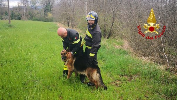 Arezzo: pastore tedesco cade in un dirupo. Salvato dai vigili del fuoco