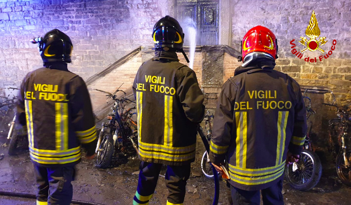 FIRENZE – I Vigili del Fuoco del Comando di Firenze sono intervenuti, nella notte fra lunedì 8 e martedì 9 aprile, con 2 automezzi e 7 unità, in Via Mazzetta, per un incendio che ha coinvolto 15 motorini. Danneggiata anche una vettura parcheggiata e la porta laterale della chiesa di San Felice in Piazza. Non si segnalano persone coinvolte e le cause sono in corso di accertamento.