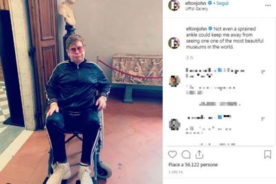 FIRENZE – Ospite illustre oggi 11 aprile alla Galleria degli Uffizi a Firenze dov’è arrivato Elton John accompagnato dal marito David Furnish e dai due figli. Nonostante un infortunio alla caviglia, che lo costringe in carrozzina, il ‘baronetto’ ha voluto visitare il museo soffermandosi in particolare davanti alla Venere del Botticelli, e poi nelle sale dedicate a Leonardo, Michelangelo e Caravaggio. Accolto dal direttore Eike Schimdt, con lui anche alcuni amici e le guardie del corpo, è poi salito sulla terrazza per un caffè e per guardare Firenze dall’alto e in particolare Palazzo Vecchio. Solo all’uscita alcuni fan lo hanno riconosciuto e lo hanno avvicinato. “Nemmeno una distorsione alla caviglia potrebbe impedirmi di vedere uno dei musei più belli del mondo”, ha poi scritto su Instagram postando una foto di lui agli Uffizi in carrozzina.