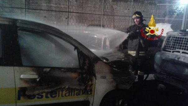 GENOVA – Una bottiglia incendiaria è stata lanciata questa notte contro alcune auto e motorini di proprietà di Poste italiane a Genova. E’ successo a Bolzaneto in via Pastorino all’interno del parcheggio adiacente l’ufficio postale. Il rogo ha coinvolto tre motorini e quattro auto. Sull’episodio indaga la Digos. Al momento ancora nessuna rivendicazione, ma un fatto simile, con il rogo di un’auto di servizio sempre a Bolzaneto si era verificato nell’ottobre del 2017 ed era stato rivendicato dagli anarchici, che hanno spesso Poste italiane tra gli obiettivi in quanto una piccola compagnia aerea collegata al gruppo verrebbe talvolta utilizzata per il rimpatrio dei migranti. L’intervento dei vigili del fuoco ha impedito che le fiamme si propagassero a ulteriori mezzi. Sul posto, anche la polizia scientifica per i rilievi.