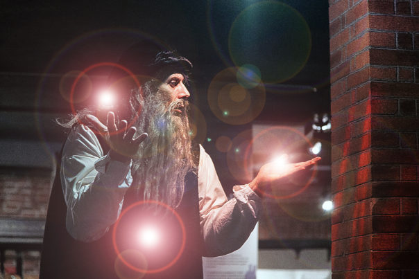Massimiliano Finazzer Flory in «Essere Leonardo da Vinci – Un’intervista impossibile», drammaturgia e regia Massimiliano Finazzer Flory, con la partecipazione di Gianni Quillico e Jacopo Rampini nel ruolo degli intervistatori
