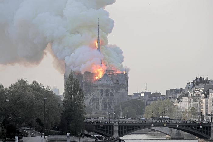 L’intera Ile-de-la Cité, dove sorge la cattedrale di Notre-Dame, è isolata, i turisti – molto numerosi – sono dall’altra parte della Senna e fissano le fiamme che stanno divorando il tetto e la guglia del monumento gotico. Sul posto sono già crollate parte delle impalcature che servivano per i lavori. Diversi elicotteri sorvolano la zona.