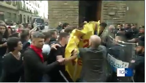 Sempre secondo quanto spiegato c’è stato qualche spintone tra una settantina di manifestanti e agenti in borghese della Digos quando i partecipanti al corteo, proveniente da piazza San Lorenzo, deviando dal percorso previsto, hanno cercato di raggiungere piazza San Firenze per poi arrivare in piazza Signoria dove erano in programma le celebrazioni ufficiali per la Liberazione. La situazione è tornata in breve tempo alla normalità. Il corteo si è poi concluso, come previsto, in piazza dei Ciompi.