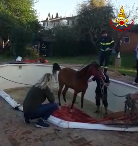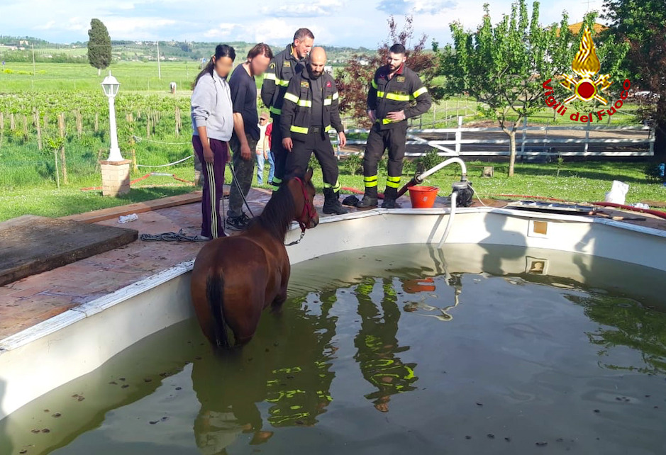Fucecchio: cavallo finisce in piscina. Salvato dai vigili del fuoco (Foto)