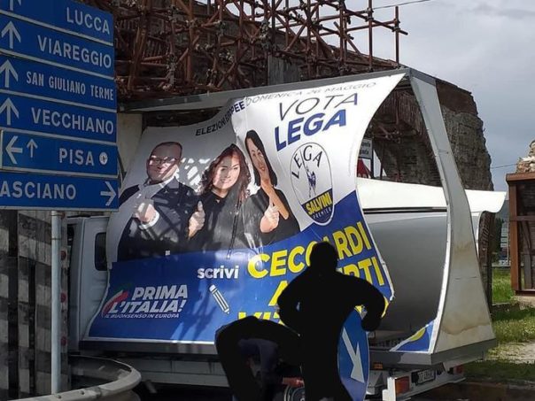 Pisa: vela elettorale della Ceccardi (Lega) impatta con le arcate dell’acquedotto mediceo. ironia del Pd